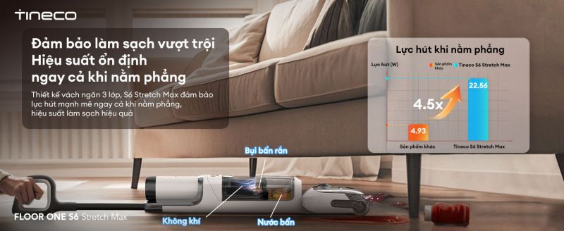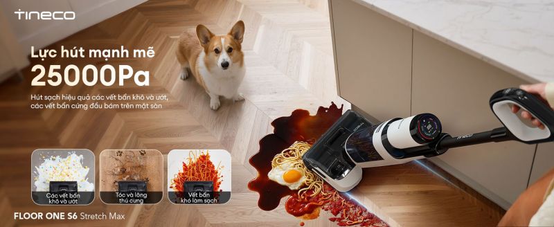 Máy hút bụi lau sàn khô ướt Tineco Floor One S6 Stretch Max sở hữu lực hút 25.000Pa