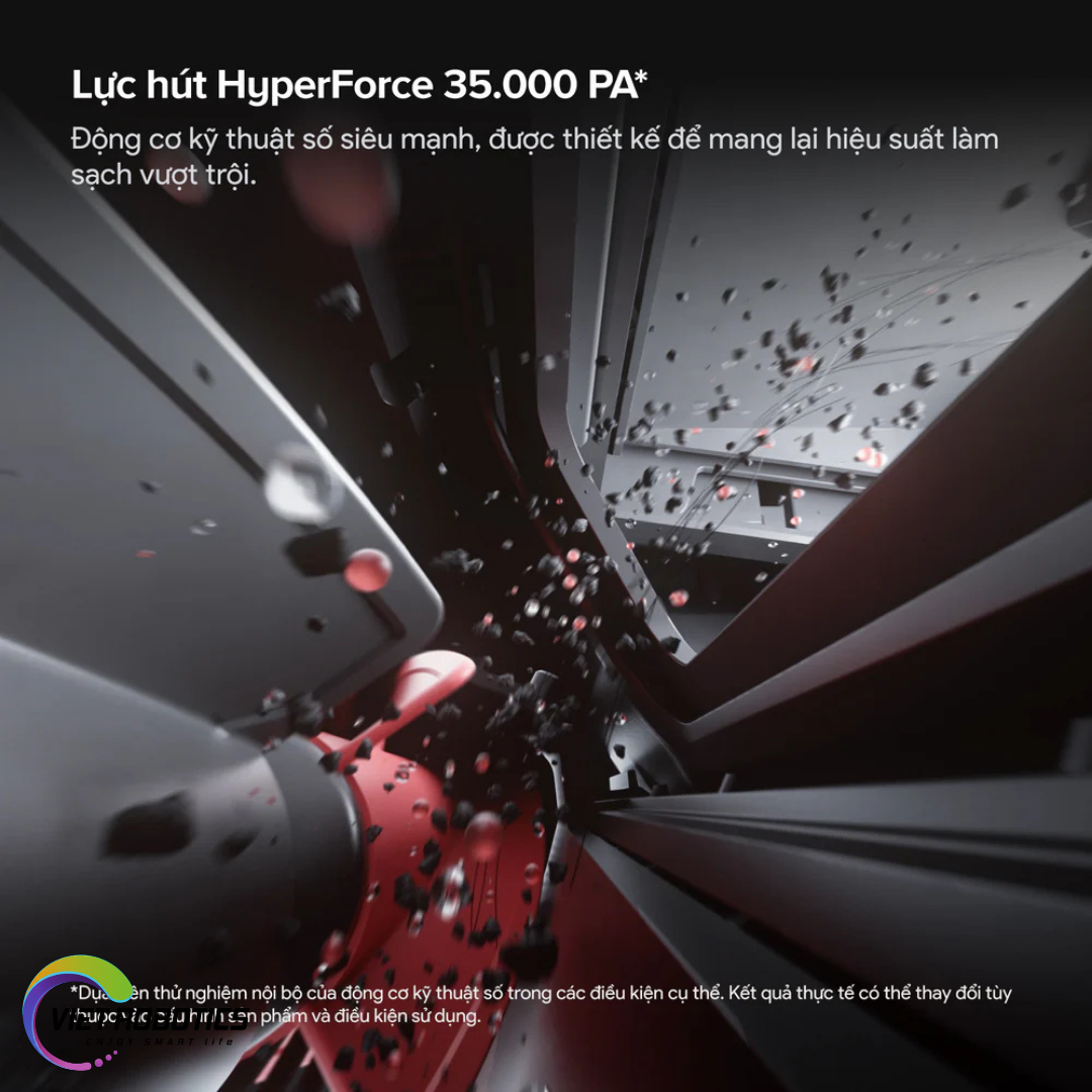 - Lực hút HyperForce 35.000 Pa, làm sạch mạnh mẽ bụi mịn, rác lớn và lông thú cưng
